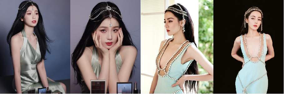However, some netizens were quick to point out that her red carpet look was rather similar to actress Esther Yu’s previous look for a cosmetic makeup commercial. Donning an elegant green silk gown, the 27-year-old star had also won a jewelled headpiece paired with an exquisite makeup look which presented a mystical middle eastern charm. Chinese social platform Weibo quickly exploded with related topics trending with fans on both sides engaging in a battle of words over whose idol carried it better!