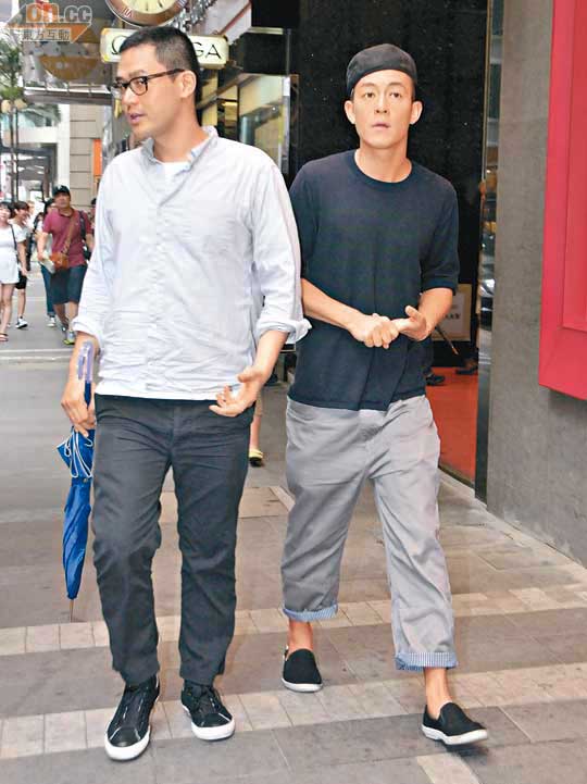 Edison forced a smile and changed his expression, ignoring the reporters. Continuing to chat with his friend, Edison walked away. A reporter asked, “Did you stay in contact with Cecilia Cheung?” Edison continued to remain silent and shot forward like an arrow into a nearby building, which was only steps away from Nicholas’ location. After learning that Nic was also in Central district, perhaps Edison did not want to waste time [in avoiding him]. Edison lingered less than twenty seconds before darting across the street to escape. His facial expression soured and he intentionally did not look at reporters.