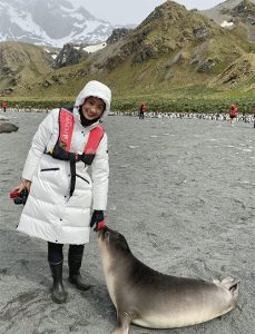 On Christmas Eve, Fala shared a video of her with a baby elephant seal, writing, “Who wants to have this baby elephant seal as a pet? I do! But he may [weigh] 3000 kg (6600 lbs) when he grows up… ok, maybe not… [but] isn’t he the cutest?”