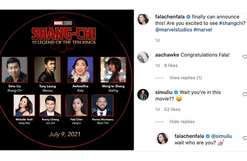 Co-star Simu Liu, who will be playing the titular Shang-Chi, teasingly commented, “Wait you’re in this movie??”