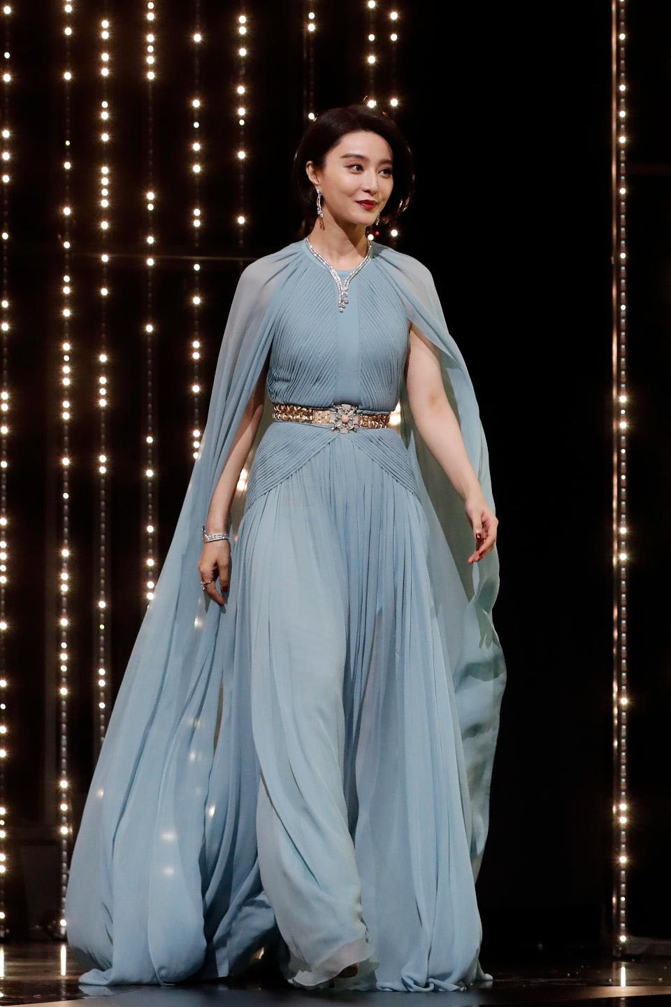 Bingbing then kicked off the festival with an light blue gown by Elie Saab Couture on the opening ceremony red carpet on Wednesday, May 17. The golden bands and capelet gave the dress a more royal look.