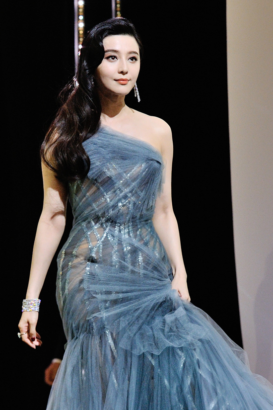 On May 26, Bingbing shined in a breathtaking, custom-made embroidered cape dress by Christopher Bu, the same designer who gave Bingbing her signature China-inspired look. It is the sequel to Bingbing’s famous red crane-dress back in 2011.
