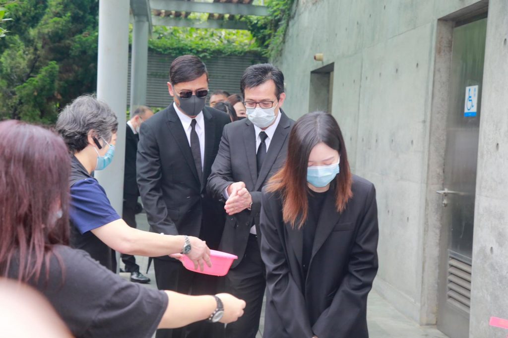 The funeral proceedings ended at 8:30 a.m. the next day, to be followed by cremation. Holding her mother’s framed photo with a sorrowful expression, Adrian boarded the hearse heading for the crematorium with father, while the elder Mrs. Leung left the scene, supported by other relatives. After the cremation ceremony ended at around 10:40 a.m., father and daughter emerged, bowing with clasped palms as Felix expressed thanks to the reporters. When father and daughter arrived at the temple complex, reporters went up wanting to interview them, but as Adrian shook her head refusing, they bowed again and did not speak with the press.