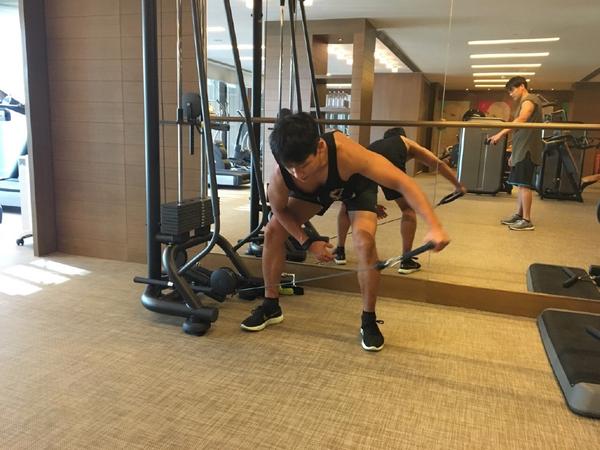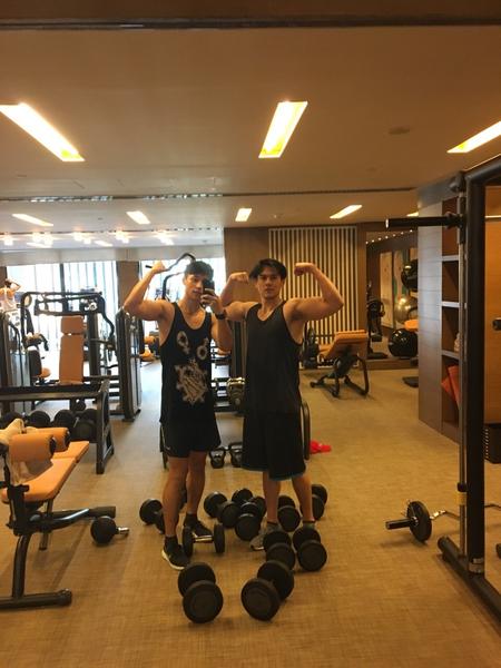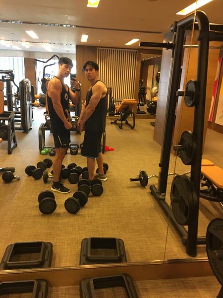 On Tuesday, singer-actor Vision Wei (魏晨) brought along his close friend Eddie Peng (彭于晏) to the gym. The two actors kept it casual and practical with their black tanks and black shorts as they headed directly over to the weight room to do some muscle training.