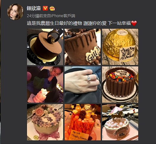 Gillian Chung (鍾欣潼) announced on social media today that she has accepted boyfriend Michael Lai‘s (賴弘國) proposal! Flashing a photo of her diamond ring, the 37-year-old singer/actress wrote, “This is the best gift for my Chinese birthday. Thanks for your love! Next stop is happiness!”