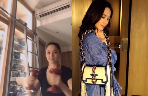 Following Gillian Chung‘s (鍾欣桐) return to Hong Kong from Malaysia after filming for Female Forensic Scientist JD <女法醫JD> got halted due to COVID-19, the actress-singer is following public health instructions and self-quarantining herself for 14 days at home. Like many others currently staying at home, Gillian also spends her time exercising and keeping fit. Recently, she uploaded a Tik Tok video of herself lifting dumbells at home, but viewers were distracted by her huge wall cabinet housing designer handbags in the background.