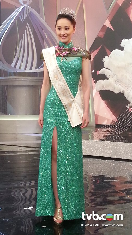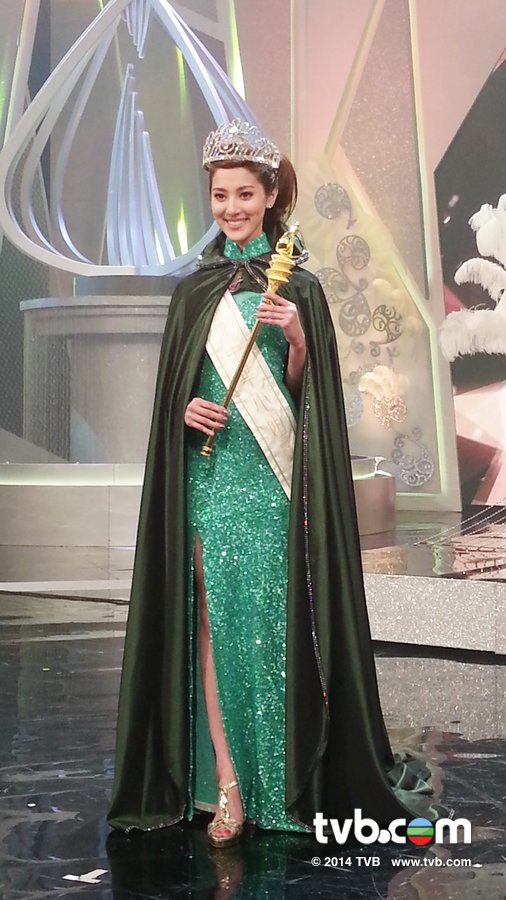 During a question and answer segment of the show, Grace won points by stating beauty contestants should not only possess beauty and intelligence, but a loving heart as well. Having participated in many forms of charity work since winning the 2013 Miss Hong Kong title, she proved to be an example of an ideal contestant. Once Grace was announced as the final winner of the night, she immediately covered her face and burst into tears.