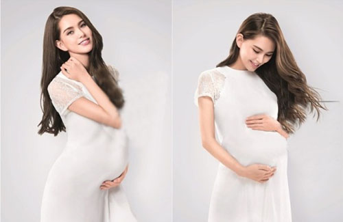 These pics look weird, especially the top 2. Where are her legs? O.o Too much photoshop perhaps? How can so many HK girls be all belly when they’re pregnant??? Is it something in the water? Lol.