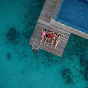 After spending a fantastic week in the Maldives with her close friends in the Nonsense Club, the girls decided to share a series of memorable photoshoots that they took together while on the islands. A few days ago, Paisley Wu (胡蓓蔚) shared a group photos of the girls wearing bikinis, and Nancy immediately took the spotlight with her fit figure and tight abs.