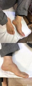 “My left foot naturally has a high instep,” he said. “The injury made it worse, and the tissue proliferated. It is painful to wear regular shoes.”