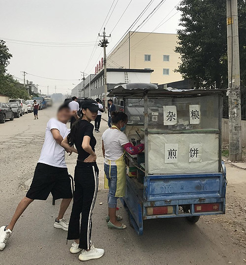 While taking care of her family, the 29-year-old actress has been juggling a busy career. This may account for Angelababy’s recent weight loss. Craving a jianbing for breakfast one morning, Angelababy lined up at a street cart and appeared to be very hungry. Barefaced and wearing a cap, Angelababy dressed casually in a t-shirt and lounge pants. More surprising than her attire was that Angelababy seemed to be at her thinness ever, and was very fragile without an ounce of fat in her.