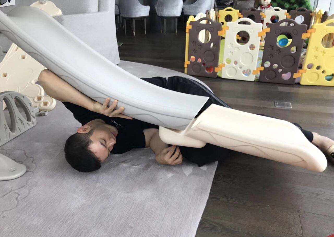 With Little Sponge about to turn one year old later this month, Xiaoming bought a playground set to put inside his home. Xiaoming put together the set himself, filming the process and taking many photos. Xiaoming shared the photos on social media to show off his fatherly side and wrote, “My son gave me homework!”