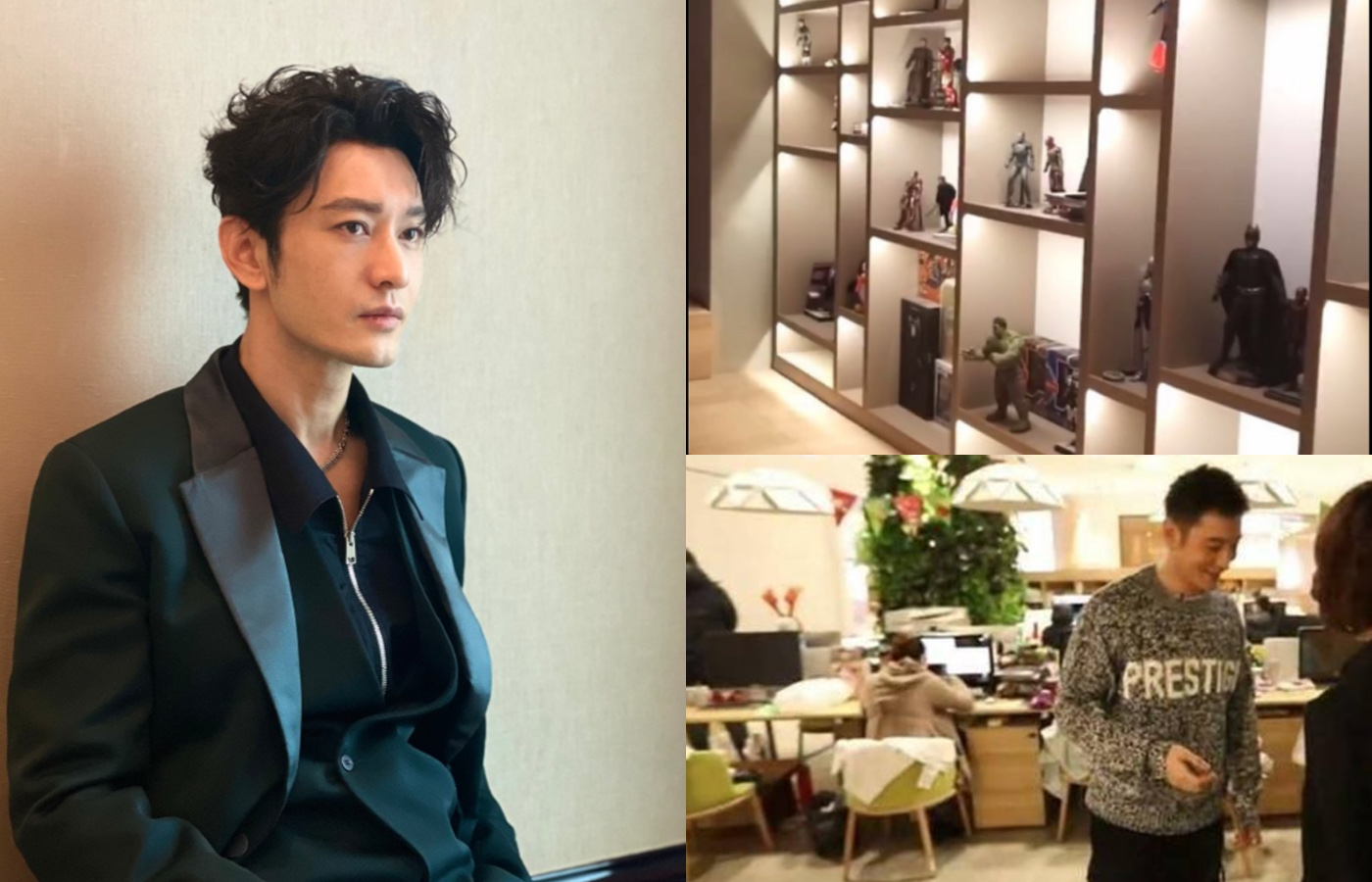 Huang Xiaoming infused his office space with collectibles from his favorite comics, including Batman and Hulk figures which take up a prominent wall display. He gave a tour of his office on a variety show earlier.
