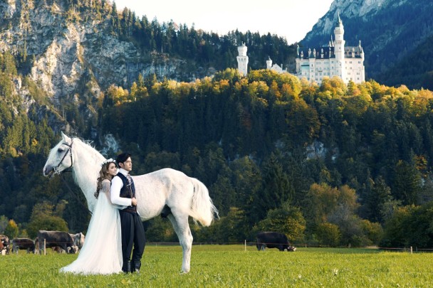 Hiring a professional photography crew, Jay and Hannah toured Europe to take their wedding photos in October. Besides England, the pair flew to Germany, Czech Republic, and France to capture the scenic local backdrop for their photos. Appearing in beautiful gowns and outfits, Jay and Hannah posed as if they were a couple in a fairy tale wedding.