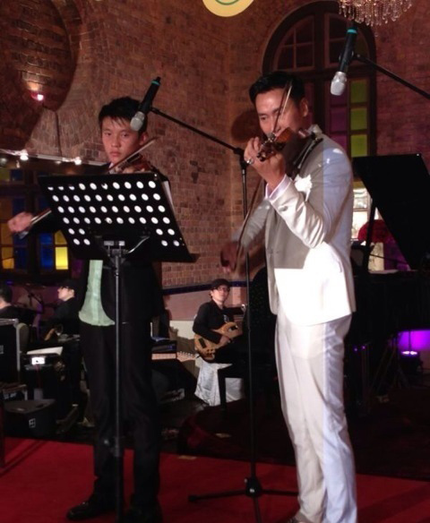 The MC of the event asked the couple’s teenage son, Ma Zai Xiang (馬在驤), if he felt uncomfortable by his parents’ “cheesy” relationship. The 15-year-old replied, “It’s normal!” Joe and his son serenaded to Karen on the violin, adding to the romantic atmosphere of the wedding.