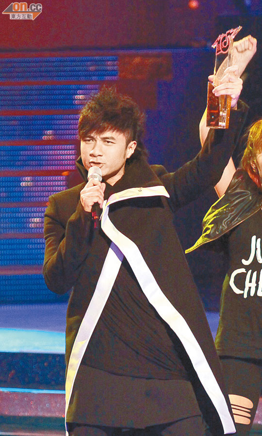Due to the absence of singers from the Big Four Recording Companies, second and third line singers such as William Chan, Ken Hung ( 洪卓立), and Wong Cho Lam’s (王祖藍) status were promoted, as they sat in the front row seats along with Leo Ku and Raymond Lam. TVB’s “own friends” won big at the awards. Aside from TVB’s “biological sons,” Raymond Lam and Wong Cho Lam, new TVB boss Charles Chan’s (陳國強) record company artist, Tak Dik (狄易達) won the “Most Popular Duet Song Award.” Mag Lam (林欣彤) won 3 awards, while Grasshoppers (hosts of All Star Glam Exam) won 2.5 awards.