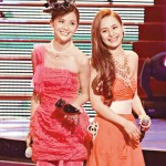 In the industry for 10 years, Twins dressed up prettily for the 2011 JSG Music Awards. Charlene Choi ( 蔡卓妍) wore pink one-shoulder dress, while Gillian Chung (鍾欣桐) wore an equally eye-catching orange gown. When Charlene won a “Golden Melody Award” for her song Every Year <年年>, boyfriend William Chan (陳偉霆) applauded excitedly offstage.