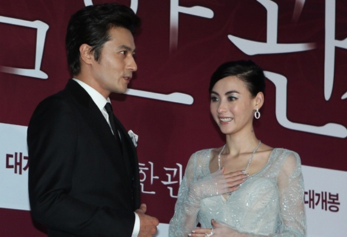 Hur Jin Ho’s (許秦豪) Chinese film, Dangerous Liaisons <危险关系>, had a star-studded VIP premiere at the Yeouido CGV Theater in Soul, South Korea on October 11. Director Hur Jin Ho, producer Chen Weiming (陈伟明), and leading stars Jang Dong Gun (張東健) and Cecilia Cheung (張栢芝) greeted the media enthusiastically. The film’s other lead actress Zhang Ziyi (章子怡), however was not in attendance.