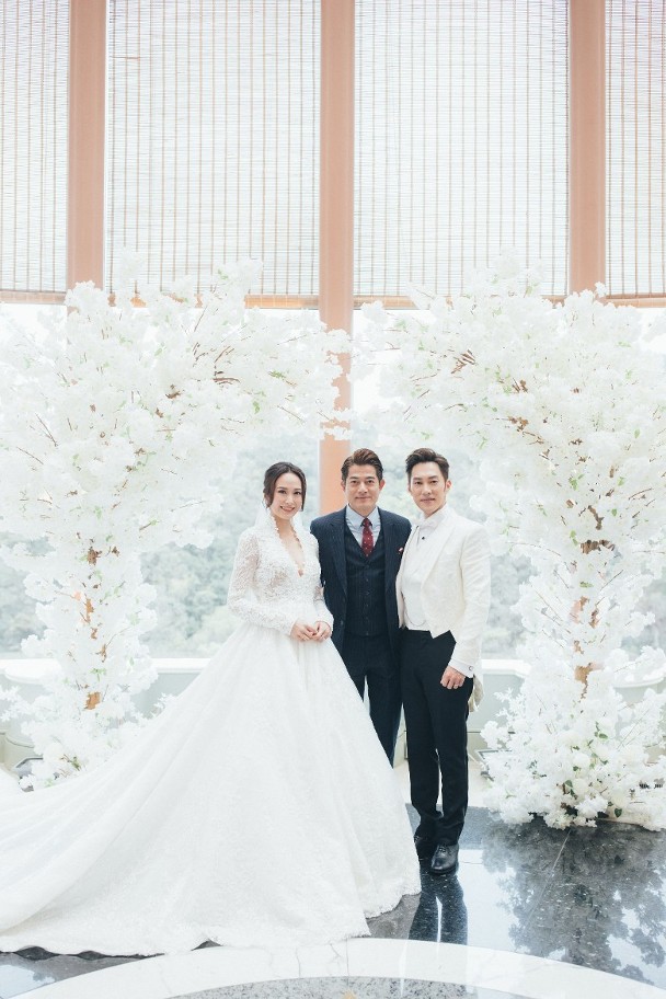 Given the pandemic restrictions, the couple limited their guests to 90 people. Aaron Kwok (郭富城), who has been longtime friends with Shing and worked with Kathy on two films, was very happy to attend the wedding ceremony. “I’ve watched Shing grow up, and become a dance choreographer. He also helped me out at my concert.” Asked what type of gift he prepared for the newlyweds, Aaron said, “Money is the most practical!” As for any particular parenting advice he will be sharing, Aaron said, “We’ll sit down and chat about it when there is time. Being a dad is a happy thing!”