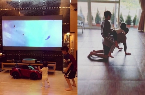 Previously, Louis posted online a father and son photo of him playing the game console in the living room with his son James Cheung (張瞻). It can be seen that the living room is massive with high ceilings. Earlier, he also uploaded a photo of his kids riding him while he was on all fours and a picture of his son rubbing his back in the bathtub. One can tell how well family man Louis and his kids get along.