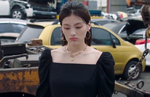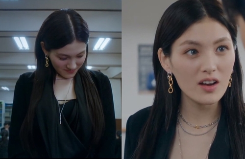 Yong Ji made her first appearance at a funeral in an all-black outfit. Although she attempted to be low-key, she still stole the show with her bold chain-style gold earrings and flashy long silver necklace.