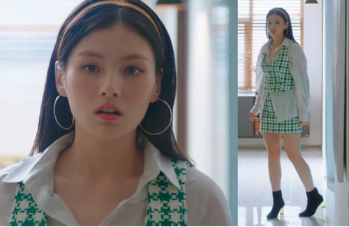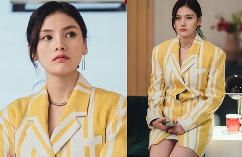 Most of Yong Ji’s outfits involve bold and bright colors to illustrate her confident and self-assured personality. One of her looks comprised of a yellow and white striped dress blazer. On top of giving a sense of professionalism, it also highlights her vivid energy.