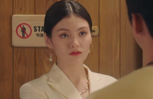 In a pure white suit, Yong Ji looks chic, classy, and expensive. With her hair in a middle part and neatly tied back, she gave off a powerful and exclusive aura while rocking gold and pearl accessories.