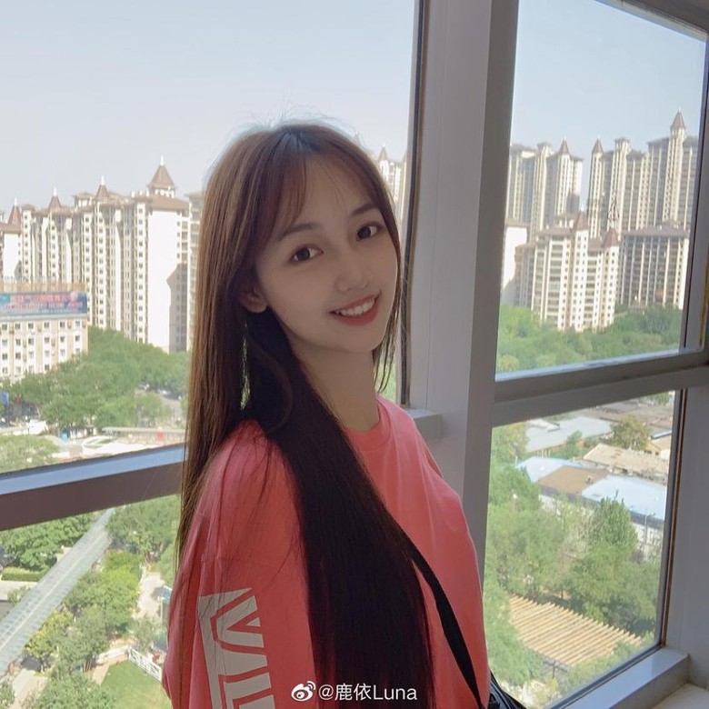 The woman in question is 21-year-old Luna Lu (鹿依), real name Qinniu Zhengwei (秦牛正威), a recent graduate of the Beijing Film Academy. Luna is best known for her videos where she looks back to the camera with a bright smile, earning the nickname “Looking Back Meimei” (回眸妹妹). She’s had various stints in the entertainment industry, such as being part of the short-lived girl group Your Baby (你的宝贝). She has starred in a tie-in phone commercial for Story of Yanxi Palace <延禧攻略> as a palace maid.
