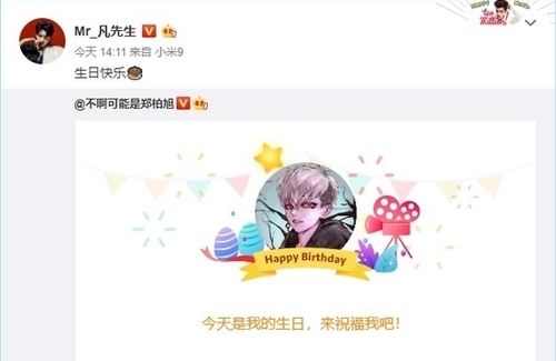Kris Wu Wishes Huang Zitao a Happy Birthday on Weibo
