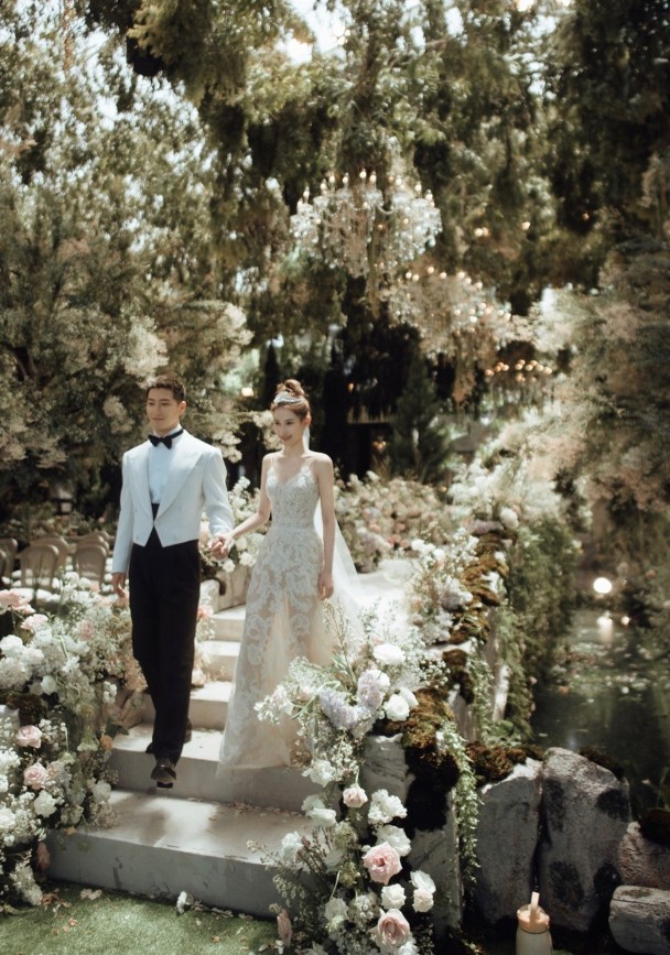 Dating for four years, socialite Laurinda Ho (何超蓮) and actor Shawn Dou (竇驍) held their wedding at the Six Senses hotel in Uluwatu, Bali on April 18. Giving Laurinda a sweet surprise, Shawn planned the wedding by himself, handling everything from the destination to the decorations and music.
