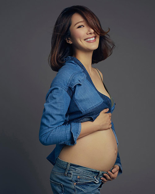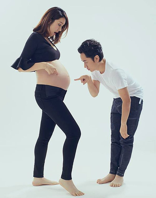 Many celebrity expectant moms like to pose nude for maternity photos for a healthy, sexy aura. However Leanne opted for a simple photo with Cho Lam. The simplicity of the photo shoot allowed the spotlight to be on the affectionate atmosphere.