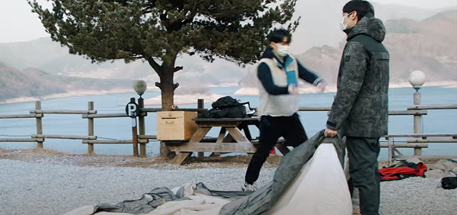 Once they arrived at their camp site, Min Ho and Seung Gi started to have disagreements over the tent’s setup. While Min Ho stubbornly insisted entrance of the tent should face the lake, Seung Gi soon grew frustrated and said, “Min Ho, don’t treat the tent like it’s your house, okay?”