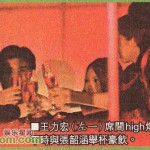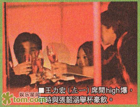 Leehom and Angela met while collaborating on a commercial together earlier in the year. Without any current work projects on hand, both Leehom and Angela appeared relaxed. The pair sat side-by-side, with Angela’s younger sister standing behind her. Sharing a toast, Leehom and Angela talked to each other intimately and shared frequent laughs. It appeared that Leehom and Angela knew each other quite well!