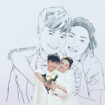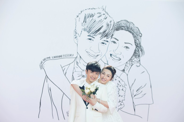 The wedding venue featured a white theme, and the centerpiece was a unique, life-size sketch of Leo and Lorraine with their arms around each other. According to Leo, he personally spent eight hours drawing the sketch, as Lorraine had wanted the wedding decorations to be different from conventional weddings, and did not wish to have the venue filled with photographs of the couple. The walls were also embossed with the romantic words, “WE ARE ONE LORRAINE & LEO KU” as well as a moving statement thanking the wedding guests for attending, “Life is a song. Love is our lyrics. Thank you for being a part of our melody on this special day.”