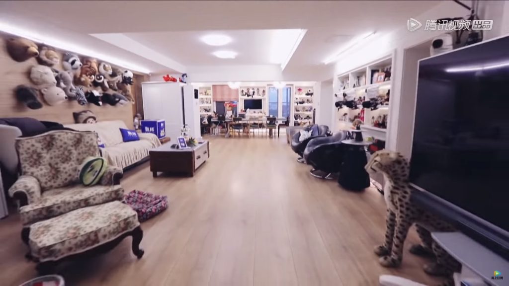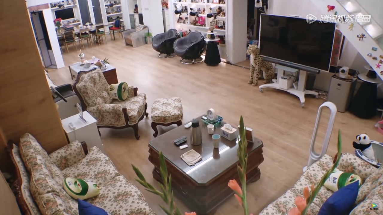 Besides a huge space with treadmills and equipment for working out, cushion covers and other items from advertising sponsors also caught the attention of viewers. Despite supposedly living alone, Li Chen has a long dining table with at least seven seats.