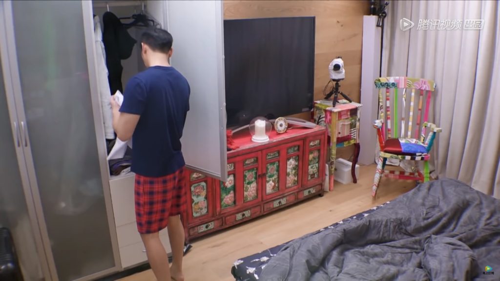 Although the house was very spacious, the furniture items were arranged haphazardly, with a variety of contrasting styles. For example, his television console was an elegant Chinese antique wooden piece, while placed right beside it was a multi-colored striped fabric chair, which made the host gasp in disbelief.