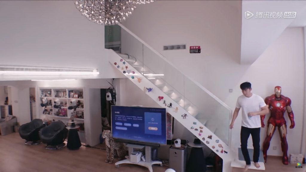 Fan Bingbing, one of the biggest stars in Chinese entertainment before her downward spiral, had been supportive of Li Chen, leading to him starring in two dramas: The Empress of China <武媚娘傳奇> and Win the World <巴清傳>. After Li Chen broke up with Fan Bingbing, he continued to do well unexpectedly, as glimpses of his gigantic Beijing mansion on the show revealed. His home featured a life-sized Iron Man figurine at the bottom of a stairway and also a motorcycle as unique pieces of home décor.