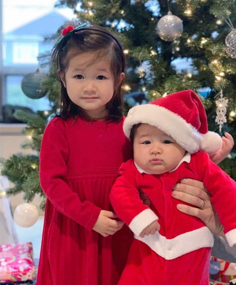 Christmas is fast approaching, and Linda Chung (鍾嘉欣) is ready for the holidays. The 34-year-old actress, who gave birth to her second child, son Jared, last September, shared a series of holiday portraits featuring her two-year-old daughter Kelly and three-month-old Jared. In the photos, Jared was dressed up as little Santa Claus, while Kelly wore a matching red dress. The siblings extremely resemble their father, Jeremy Leung!