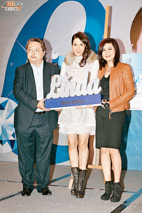 Appearing in a white Christmas outfit yesterday, it was announced that she had officially joined Star Shine International. At the event were Star Music’s boss, Herman Ho (何哲圖), TVB executive, Virginia Lok (樂易玲), and music producer, Tang Chi Wai (鄧智偉). Artists under Star Shine International’s music management, Joyce Cheng (鄭欣宜), Fala Chen (陳法拉), Alfred Hui (許廷鏗), and Famma recorded congratulatory video clips to welcome Linda in joining the company. However, rumored boyfriend, Raymond Lam, did not have any noticeable actions.