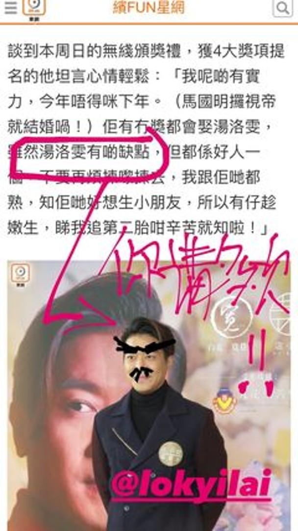 The focus was meant to be about the release of a new brand of Chinese new year cake for the upcoming Lunar New Year, but reporters managed to slip in a few questions about his close friends, Kenneth Ma (馬國明) and Roxanne Tong (湯洛雯).