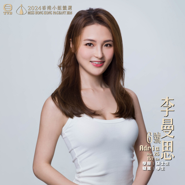 The youngest within the pageant pool is 18-year-old Jessie Chan (陳紫佟). A current student, Jessie stood out for her cute personality and youthful charm. Another standout contestant is 23-year-old Ellyn Ngai (倪樂琳), who was touted as a Michelle Reis (李嘉欣) look-alike. During her interview, Ellyn shared one of her favorite things to do was sleeping. Urging the general public to be more at ease and relaxed, Ellyn said, “I am a long sleeper. In high school, there was a time when I slept for more than 20 hours. I am lazy about this trait and want to encourage Hong Kong people to combine work and sleep.”