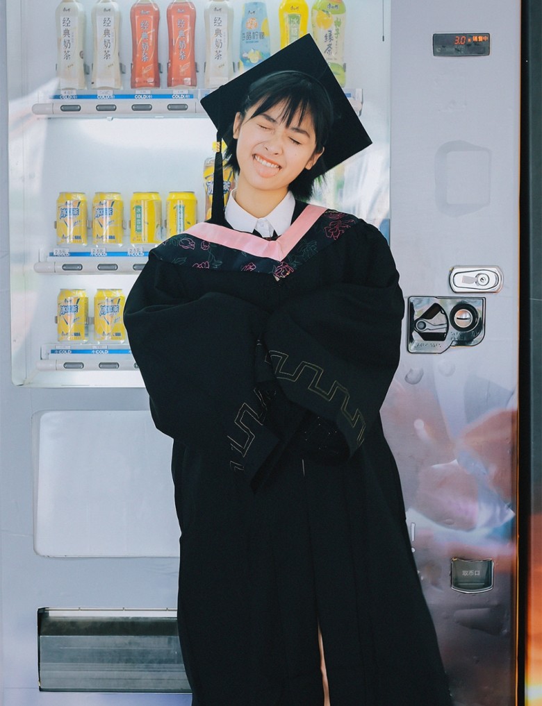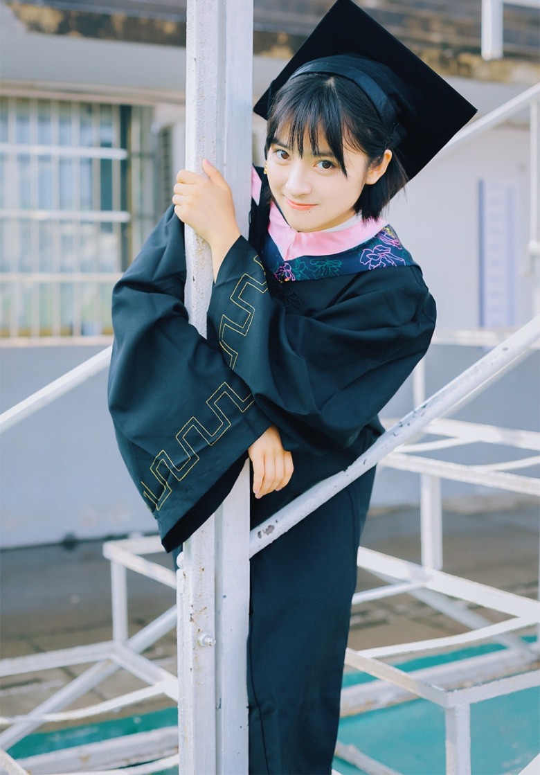 On social media today, the 21-year-old shared a series of photos she took around her school grounds while wearing her cap and gown. She wrote, “I didn’t attend my school’s commencement. I actually feel regret in my heart. I never took those jumping or cap tossing graduation pictures in front of the school monument sign with the rest of my friends. For someone who likes ceremonies, I still feel like I haven’t officially graduated yet. This is why, when I was on break, I used the opportunity to bring Xiaowen back with me to school so I can take those photos.”