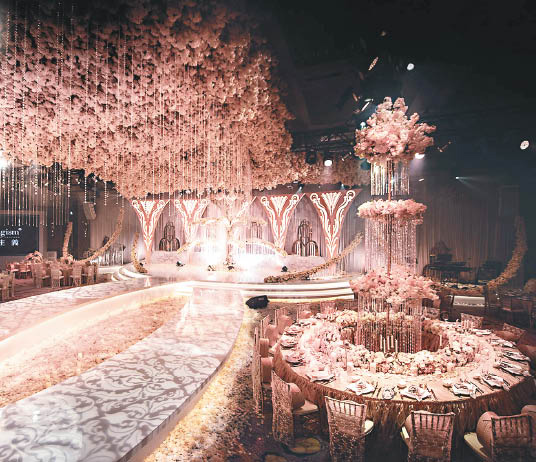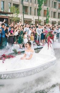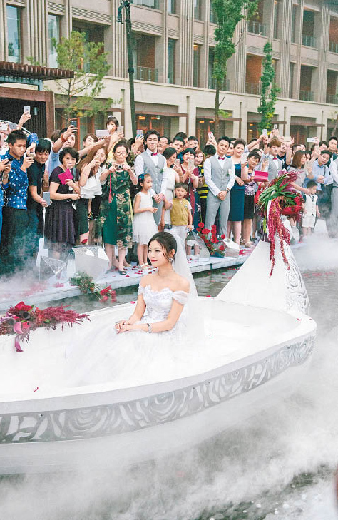 her ceremony in Taipei has a romantic theme but her bustier gown doesn’t fit in. after a Beijing ceremony and another one in Taipei, there is one more in Anhui.