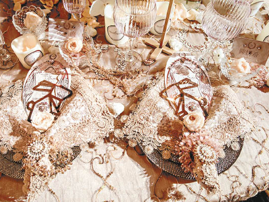 Barely resting after their Beijing banquet concluded, Michelle and Chen Xiao held their wedding celebration at the Mandarin Oriental Hotel in Taipei on July 21. The venue was decorated with pink roses, reminiscent of a romantic summer garden.