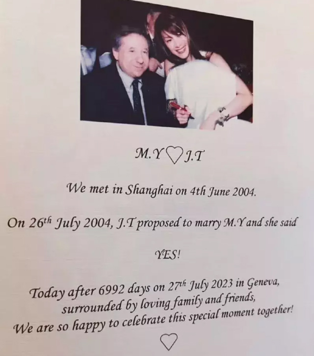 Another photo showed Michelle and Jean when they were younger with a timeline of their love story. The photo was captioned with, “We met in Shanghai on June 4, 2004. On July 26, 2004, J.T proposed to marry M.Y and she said YES! Today after 6992 days on July 27, 2023 in Geneva, surrounded by loving family and friends, we are so happy to celebrate this special moment together!”