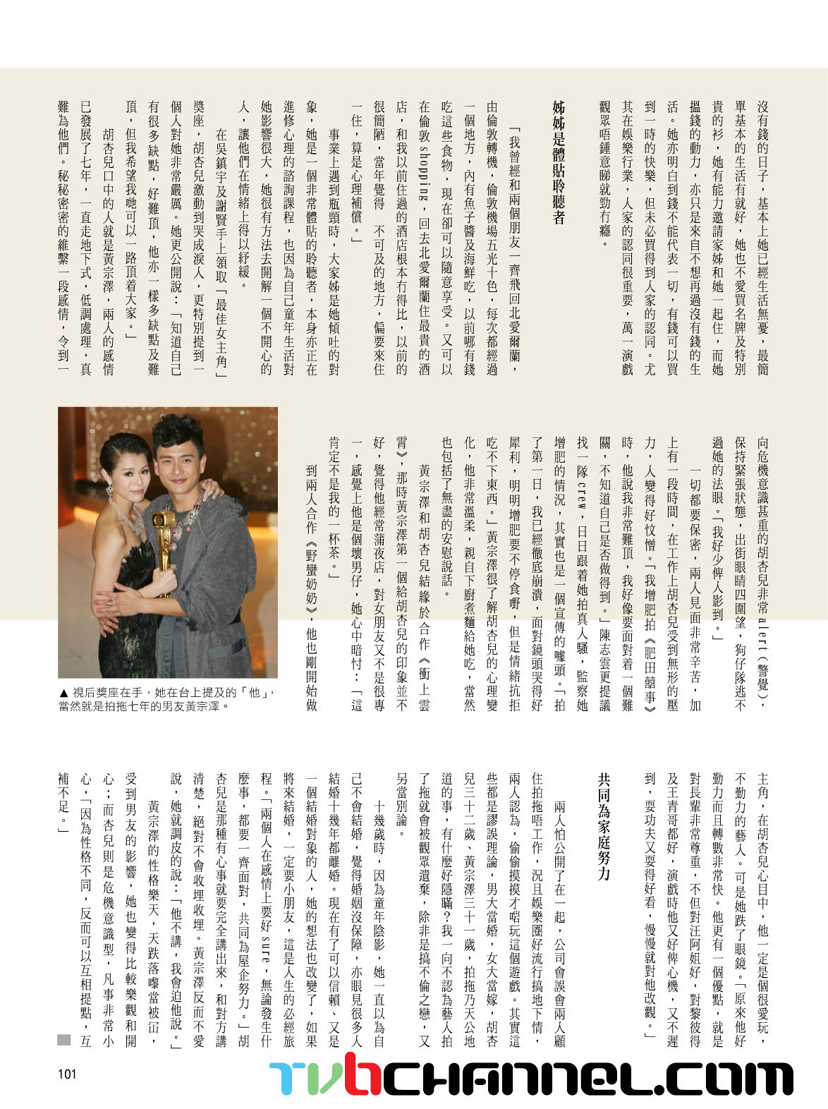 Due to their secret romance, Myolie and Bosco had to be extremely careful when meeting. While filming To Grow With Love <肥田囍事>, Myolie experienced a difficult period in her life, causing her personality to become more extreme. “When I gained weight for my role in To Grow With Love, he (Bosco) said I was quite intolerable. It is as if I had to face a difficult obstacle and did not know if I can handle it.” Former TVB executive, Stephen Chan (陳志雲), even suggested that a production crew follow Myolie around everyday to film a reality show on her weight gain, which can be used as a promotional tactic.