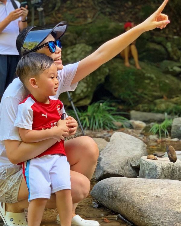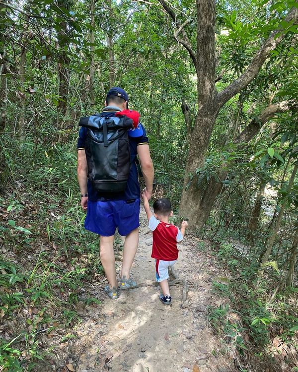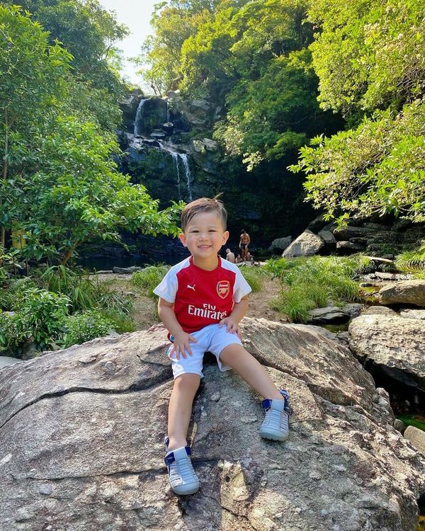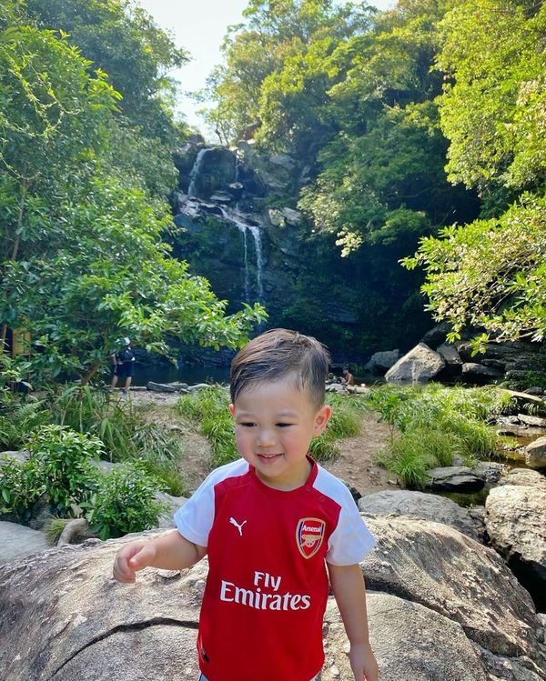 After tying the knot with businessman Philip Lee (李乘德) in 2015, Myolie Wu (胡杏兒) welcomed two sons Brendan (born 2017) and Ryan (born 2019). Taking a temporary step back from her acting career, Myolie has been spending the past few years managing her personal businesses and taking care of her two sons. A few days ago, the couple went hiking in Tai Po’s Bride’s Pool Waterfall—they brought along their two-year-old son Brendan, as well as Philip’s parents.