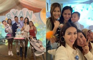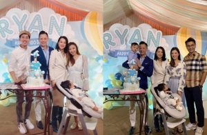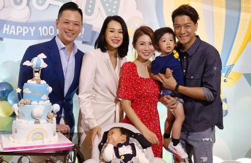 A lot of celebrity friends were invited, including singer Phil Lam (林奕匡) and his wife Rikko Lee (李靄璣). The couple both shared photos from Ryan’s 100-day banquet on their respective Instagram accounts, and Sarah Song (宋熙年) and her son Damon were spotted in some of the pictures. Lai Lok Yi (黎諾懿) also brought along his son Little Spring Chicken (小春雞), as well as his wife Nicole Lee (李潔瑩). Lok Yi and his family huddled together for a group photo with Myolie’s family of four. In the photos, Ryan was seen sitting obediently.