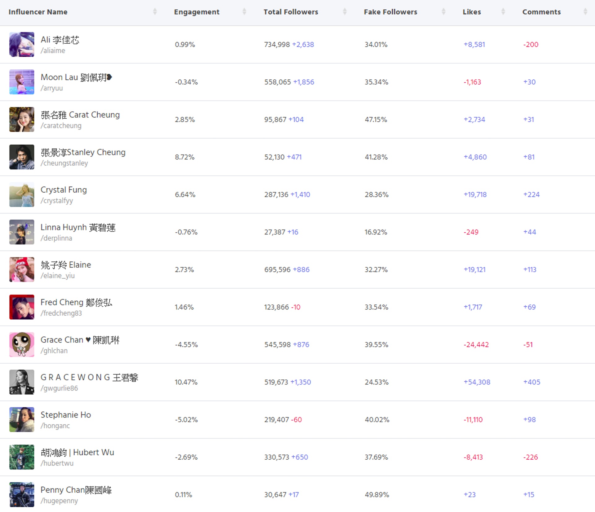 Instagram’s own crackdown on fake followers is making progress, but some fake accounts have managed to slip through the cracks. Recently, Plurk’s co-creator Alvin Woon dropped a new website (HotInfluencer) that tracks the followers demographic of many popular IG stars, particularly artists from Hong Kong.