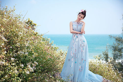 Mainland actress Eva Huang (黃聖依) commemorated her tenth wedding anniversary with husband, Yang Zi (楊子) by taking a photo shoot for Cosmopolitan Bride Magazine. With beach and garden backdrops, the photos look breathtaking!